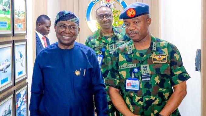 The renewed commitment was reached on Thursday when the NIMASA Director-General, Dr Dayo Mobereola, paid a courtesy visit to the Chief of the Air Staff (CAS), Air Marshal Sunday Aneke, at NAF Headquarters, Abuja.
