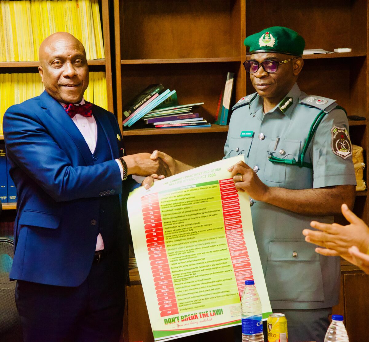 In his response, the Customs Area Controller (CAC) of Apapa Command, Comptroller Emmanuel Oshoba, said he was at the ICPC office on the directive of the Comptroller-General of Customs, Bashir Adewale Adeniyi, to reinforce and expand the relationship between both agencies. He said the visit aligned with the CGC’s three policy thrusts: consolidation, collaboration and innovation.