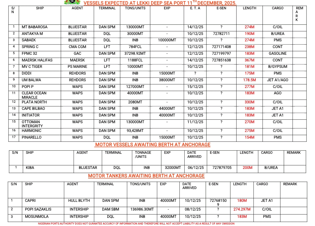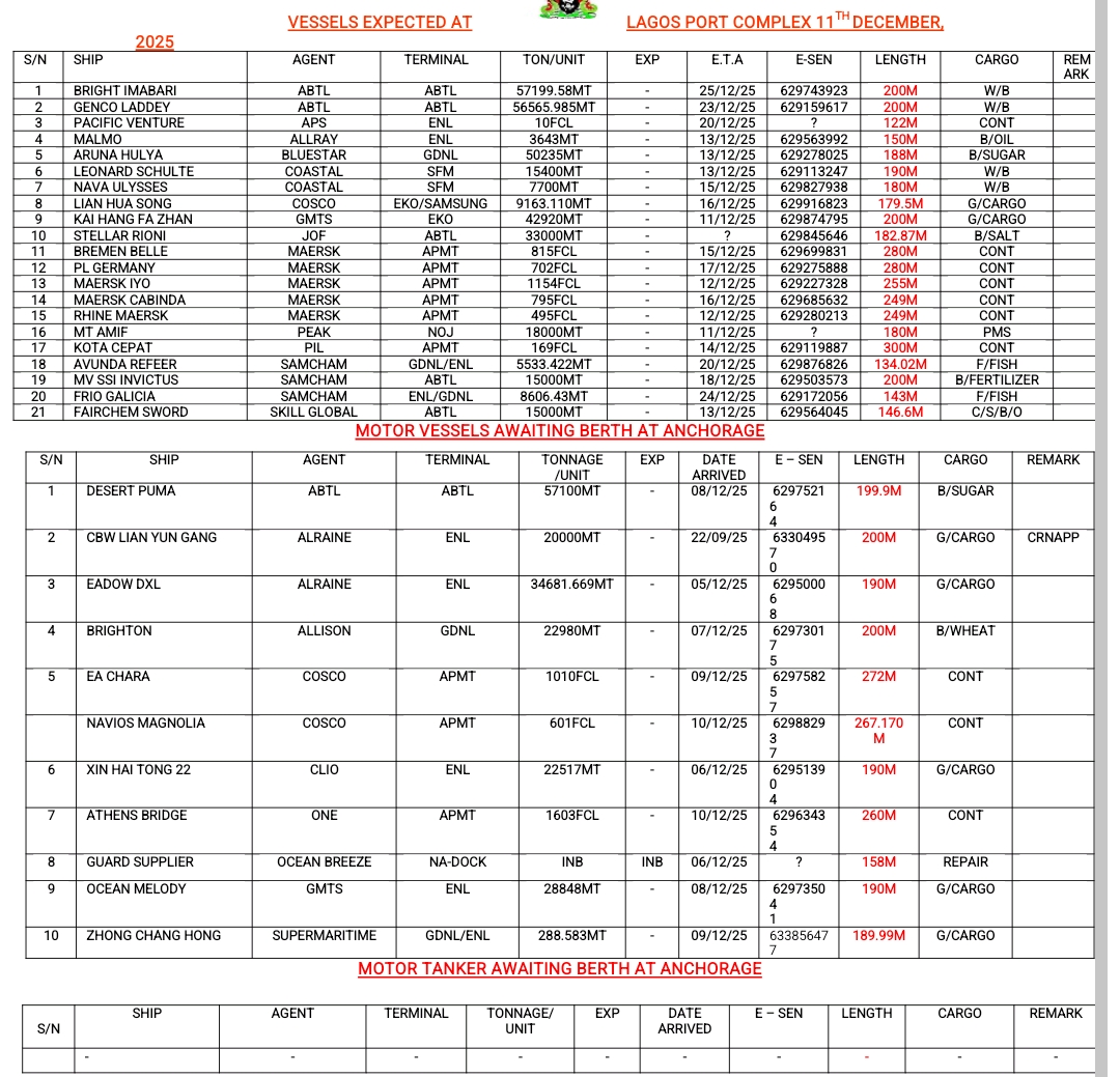 Shippers’ Council Orders Suspension of Port Charges Review Pending Stakeholder Engagement January 13, 2026