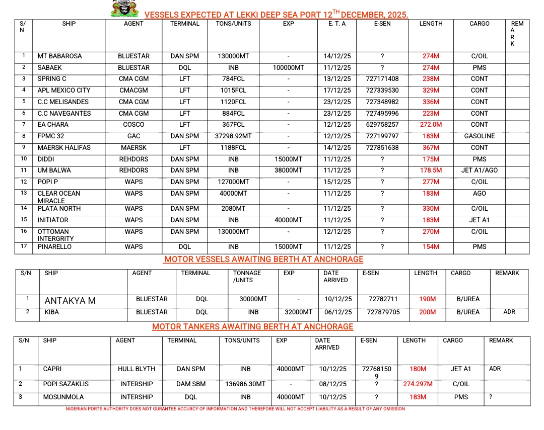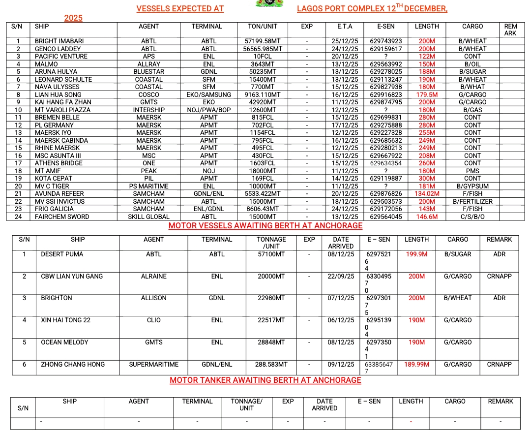 Shippers’ Council Orders Suspension of Port Charges Review Pending Stakeholder Engagement January 13, 2026