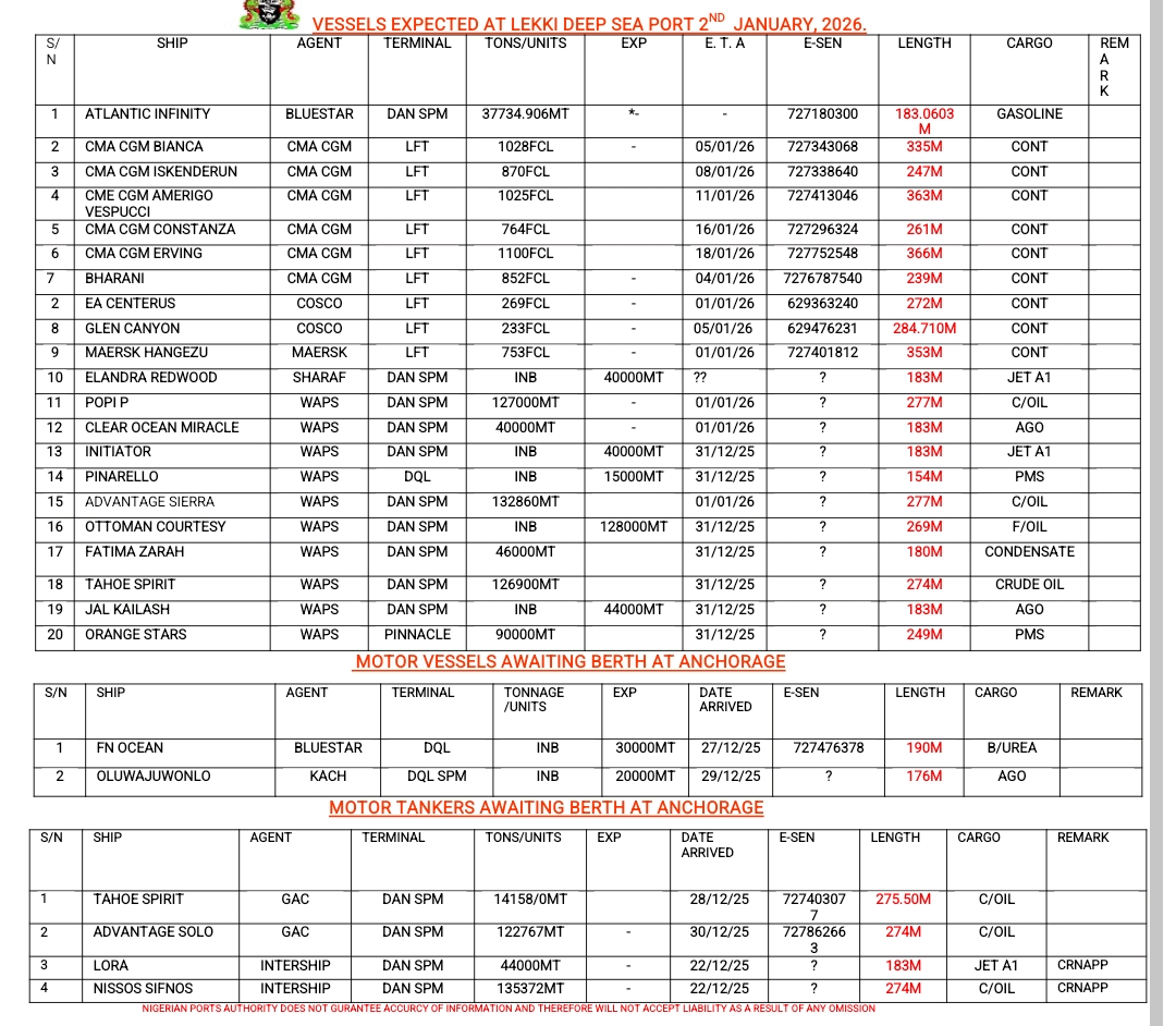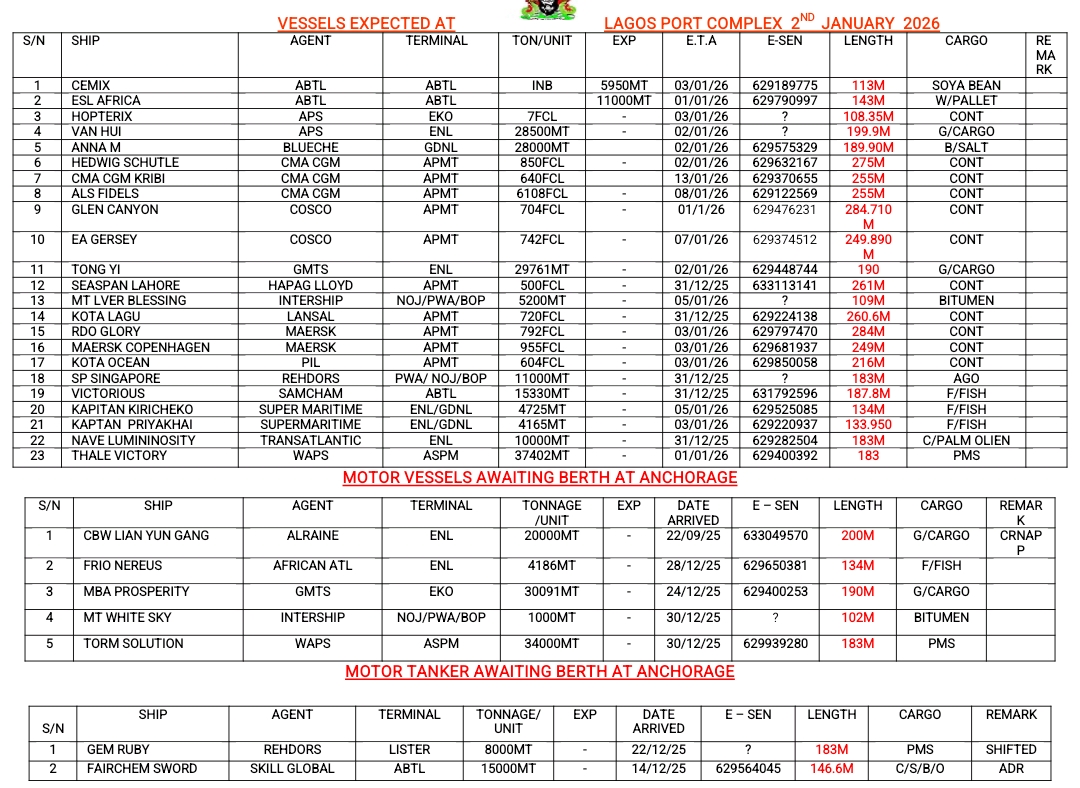 Shippers’ Council Orders Suspension of Port Charges Review Pending Stakeholder Engagement January 13, 2026