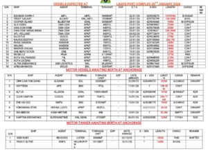 Home » Vessels Expected At Lagos Ports As At 20th January, 2026