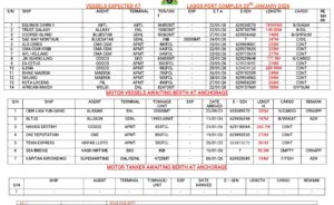 Home » Vessels Expected At Lagos Ports As At 23th January, 2026