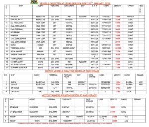 Home » Vessels Expected At Lagos Ports As At 30th January, 2026