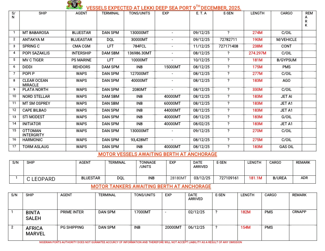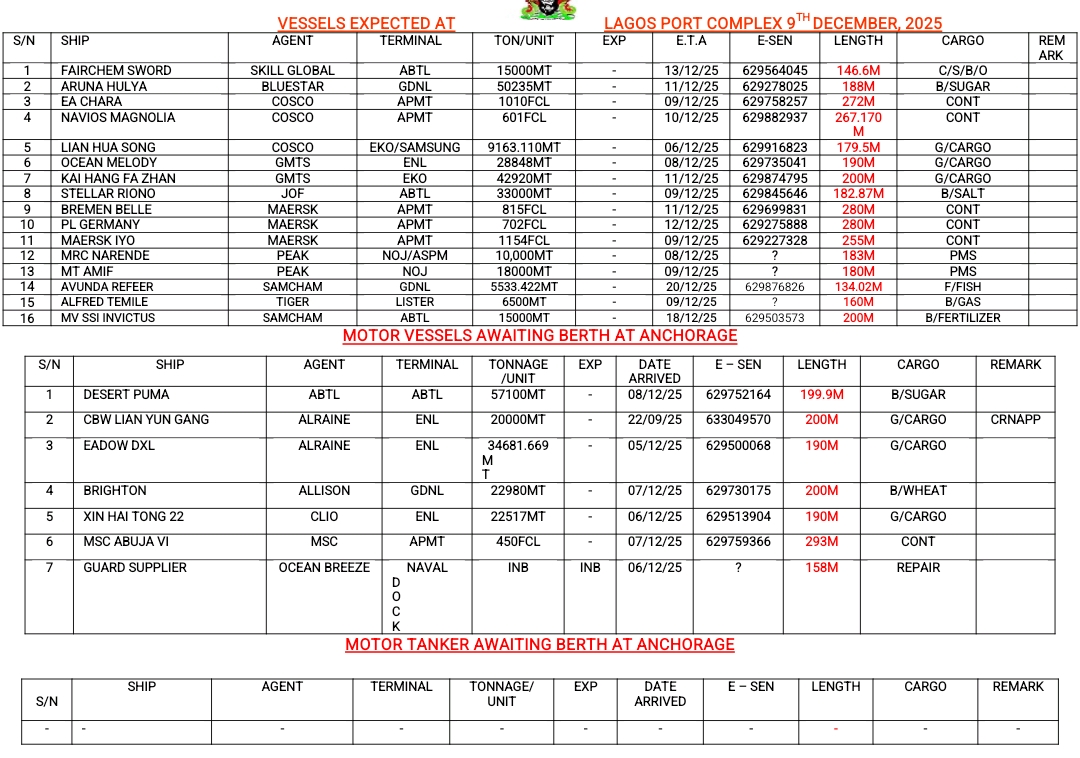 Shippers’ Council Orders Suspension of Port Charges Review Pending Stakeholder Engagement January 13, 2026